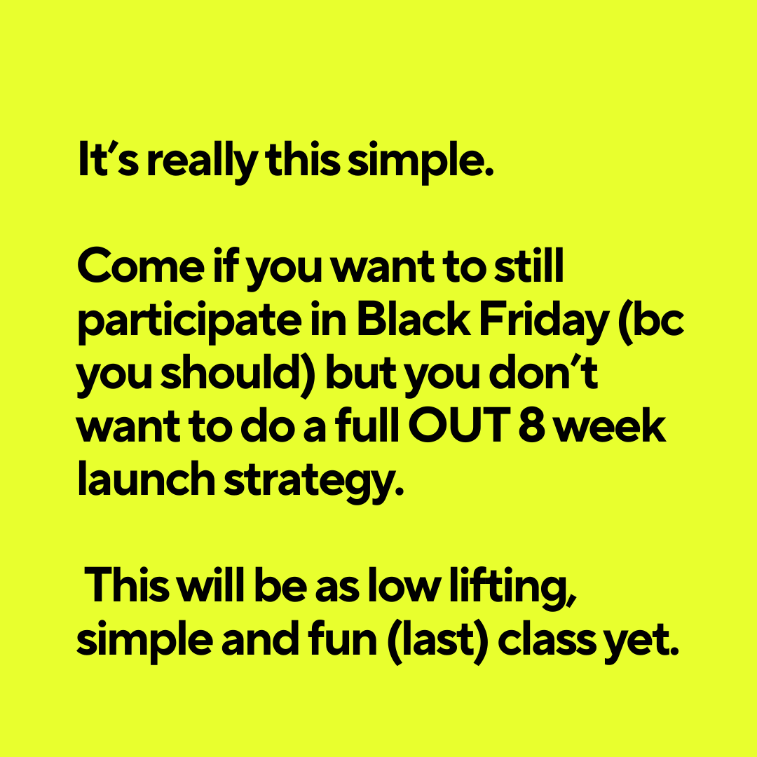Come if you want to still participate in Black Friday (bc you should) but you don’t want to do a full OUT 8 week launch strategy.